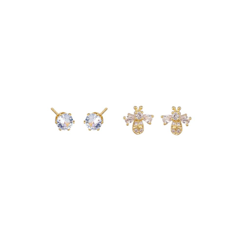 20kt gold plated hand made brass, cubic zirconia, 925 sterling silver posts