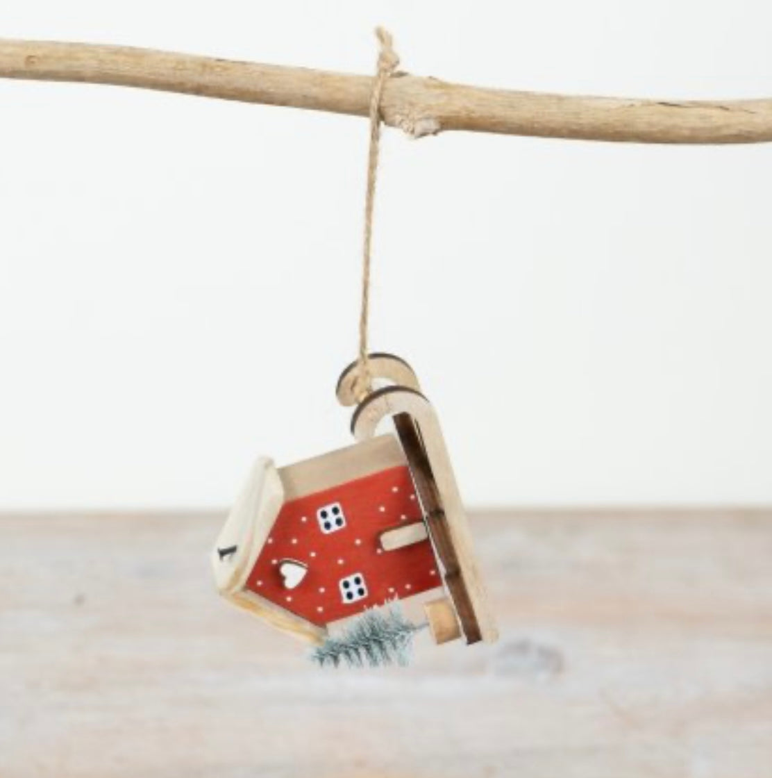 Add some festive charm to your Christmas decoration with this white wooden house on a sleigh.