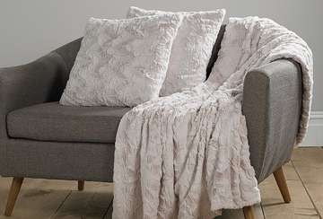 Oyster throw in a beautifully soft faux fur with a crushed texture on the front and a soft velour reverse. Tied with a grosgrain ribbon - perfect for a gift.